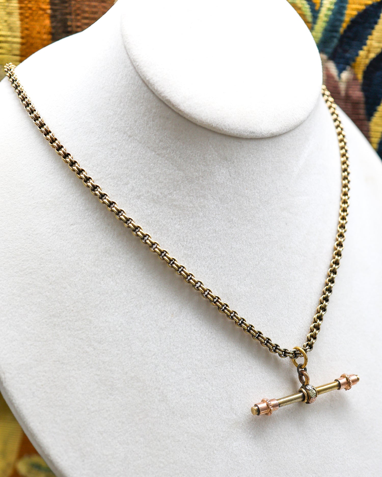 15ct Gold ( Tested ) T bar with Three Colour gold swivel centre. Circa 1880